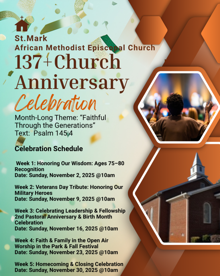 Join us at St. Mark AME, where we celebrate the diversity of God’s creation and the power of faith to bring us together as one. His inspiring sermons and leadership have touched the hearts and souls of many, inspiring us to live out our faith in tangible ways